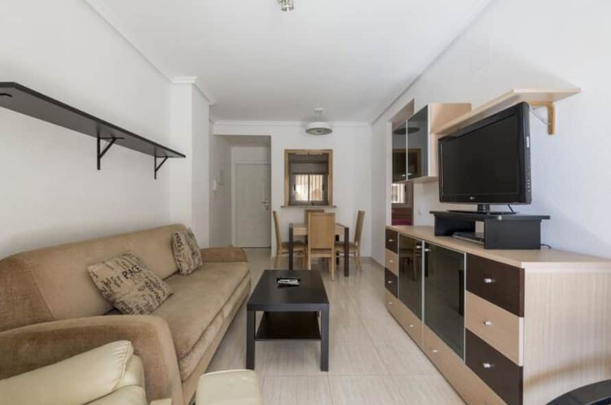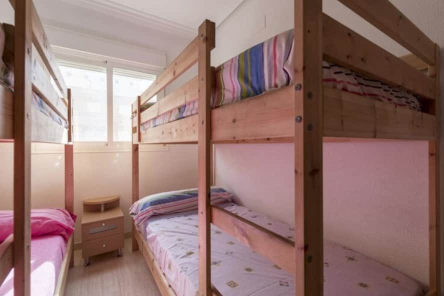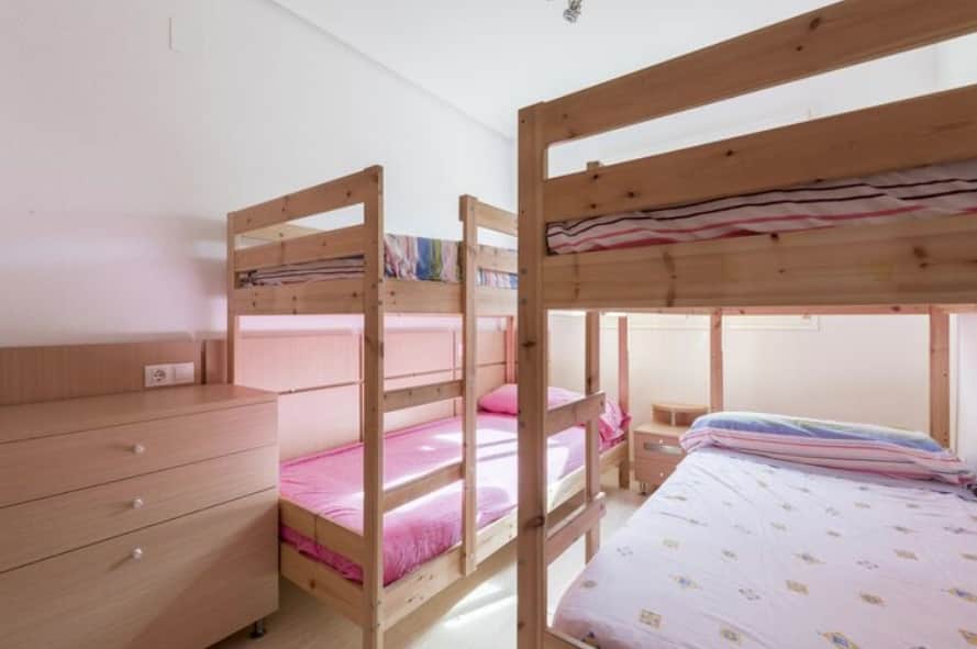 Tiene 2 literas y una cama de matrimonio. En el salón también encontramos una TV.